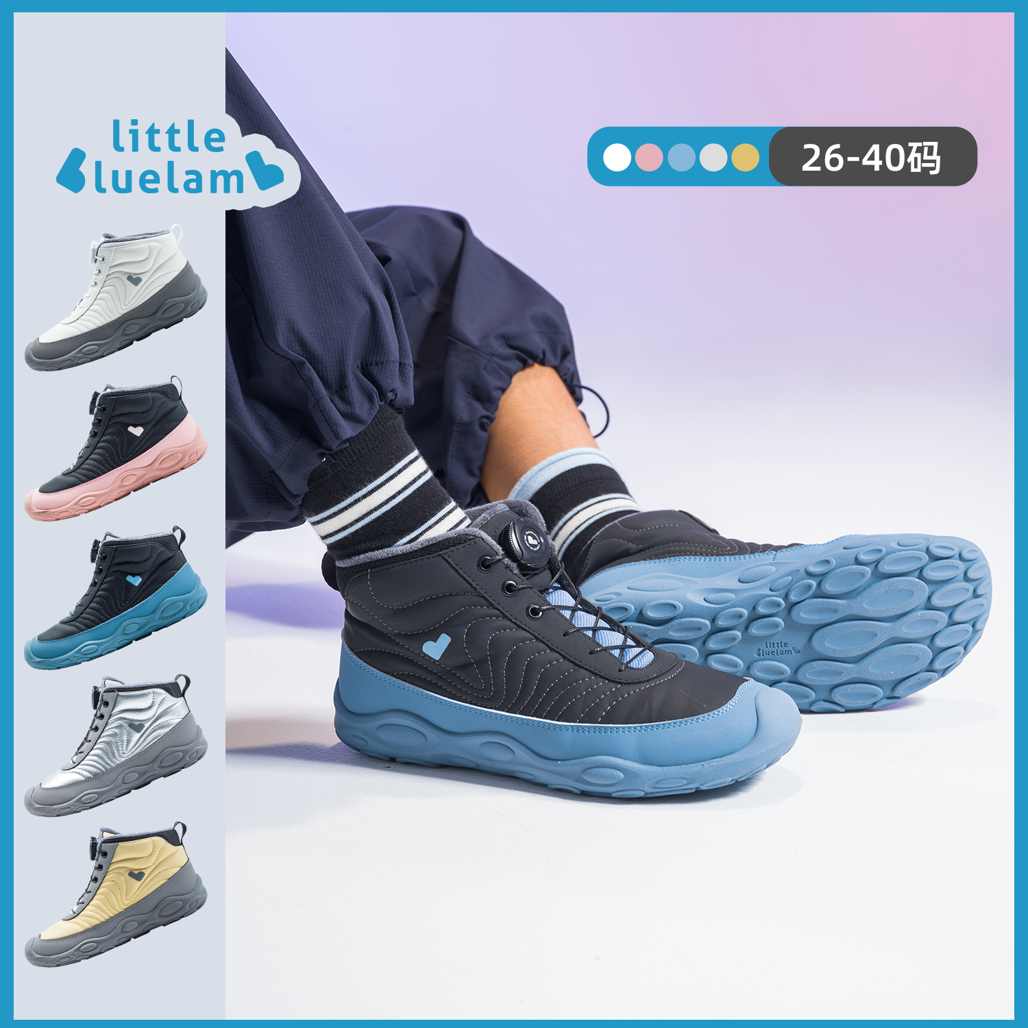 小蓝羊2025冬季新品男女童校园防滑加绒运动棉鞋户外保暖靴子麦扑