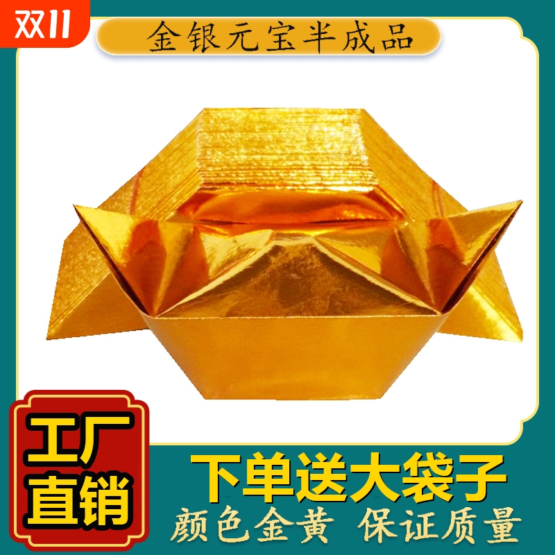 半成品元宝1000个装手工折纸切角金银元宝免折叠金纸银纸批发包邮