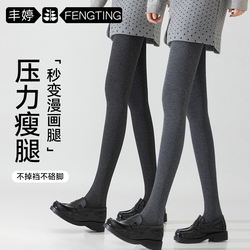 帕兰朵女打底裤春秋外穿灰色冬季加绒加厚大码压力显瘦踩脚连裤袜