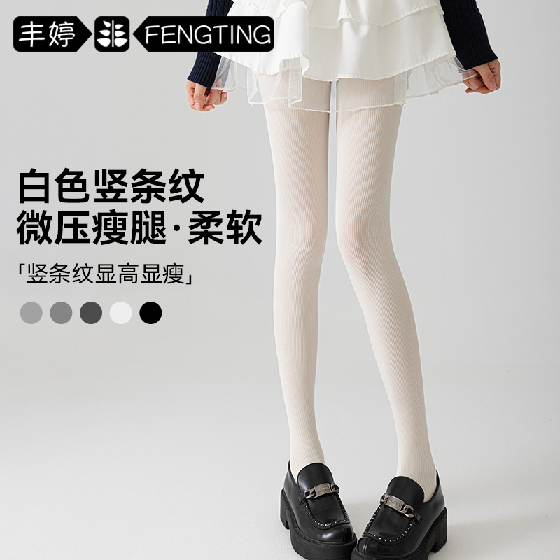 【竖条白丝】压力显瘦外穿连裤袜