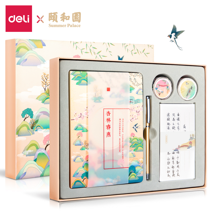 得力SZ021颐和园手帐本套装-杏林春燕-32K硬面手帐本国风手