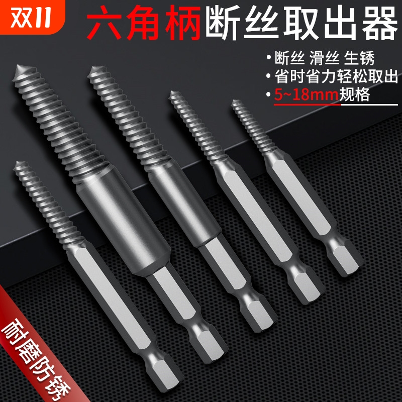 取断丝神器三角阀手电钻取丝器丝锥反丝滑丝六角柄断头螺丝取出器