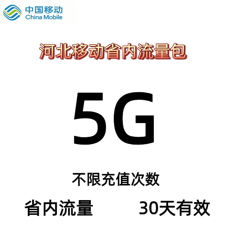 河北移动省内流量包5GB 手机流量加油包叠加包 30天有效 自动