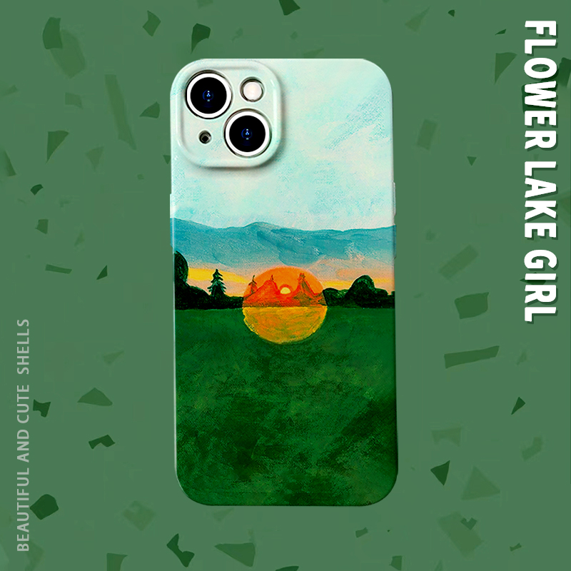 日落归山海油画艺术感ins手机壳