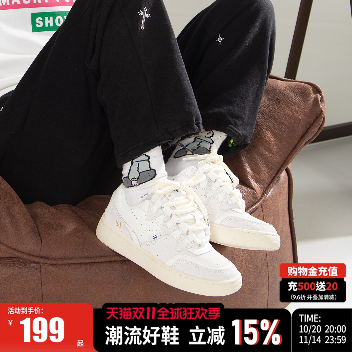 顽刻翻毛皮合成革拼接情侣滑板鞋