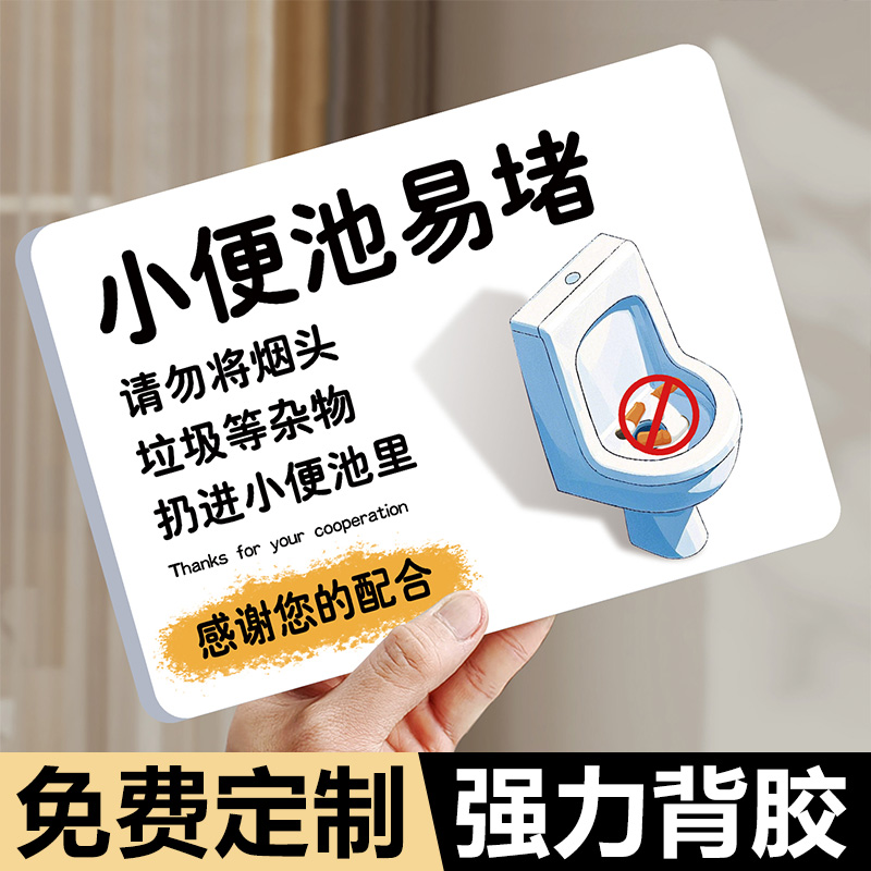 马桶易堵厕纸入篓标识牌厕所提示牌请入篓贴纸卫生间洗手间温馨提示牌