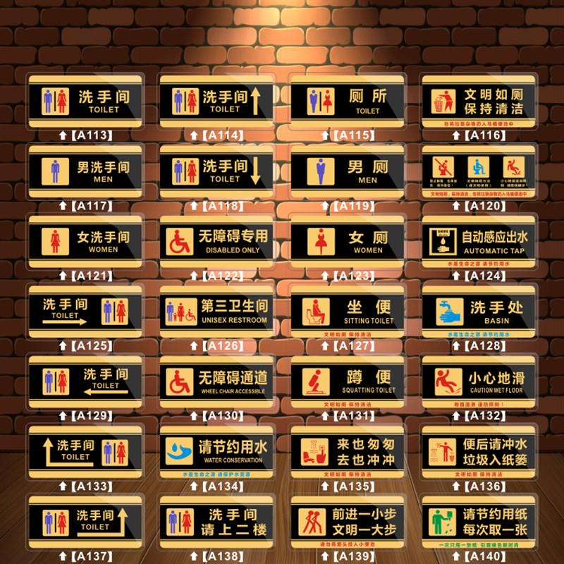 现货速发贴近文明靠近方便不锈钢标识牌厕所卫生间商场向前一小步