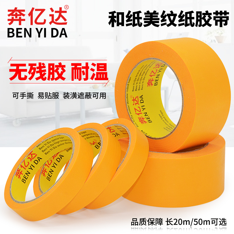美纹纸和纸胶带高粘分色纸喷漆装修黄色和纸硅藻泥喷涂遮