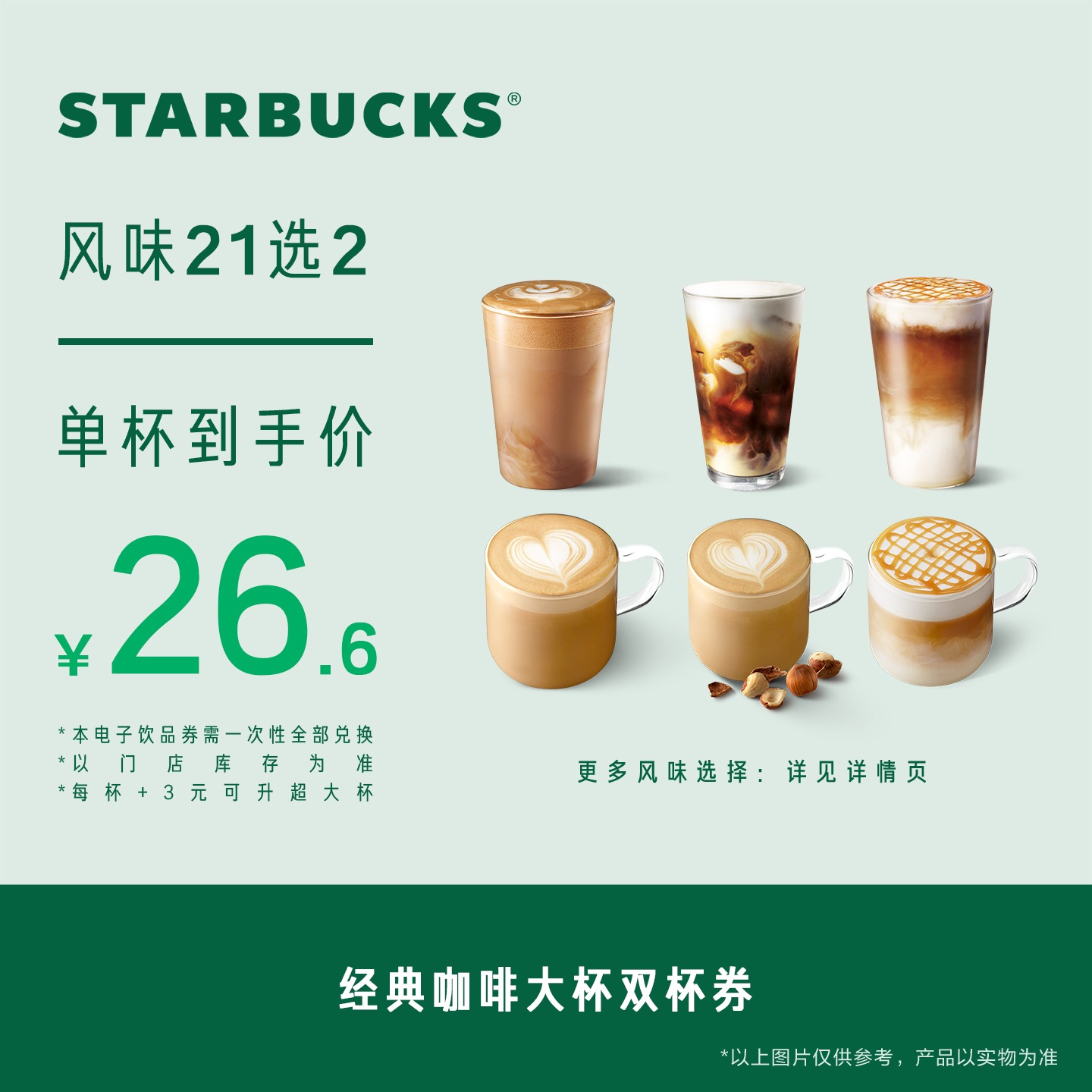 【双11限定】星巴克经典咖啡大杯双杯券电子券人气饮品电子兑换券