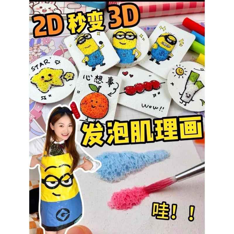 发泡肌理画画纸儿童手工diy全套材料包马克水彩简笔绘画工具套装