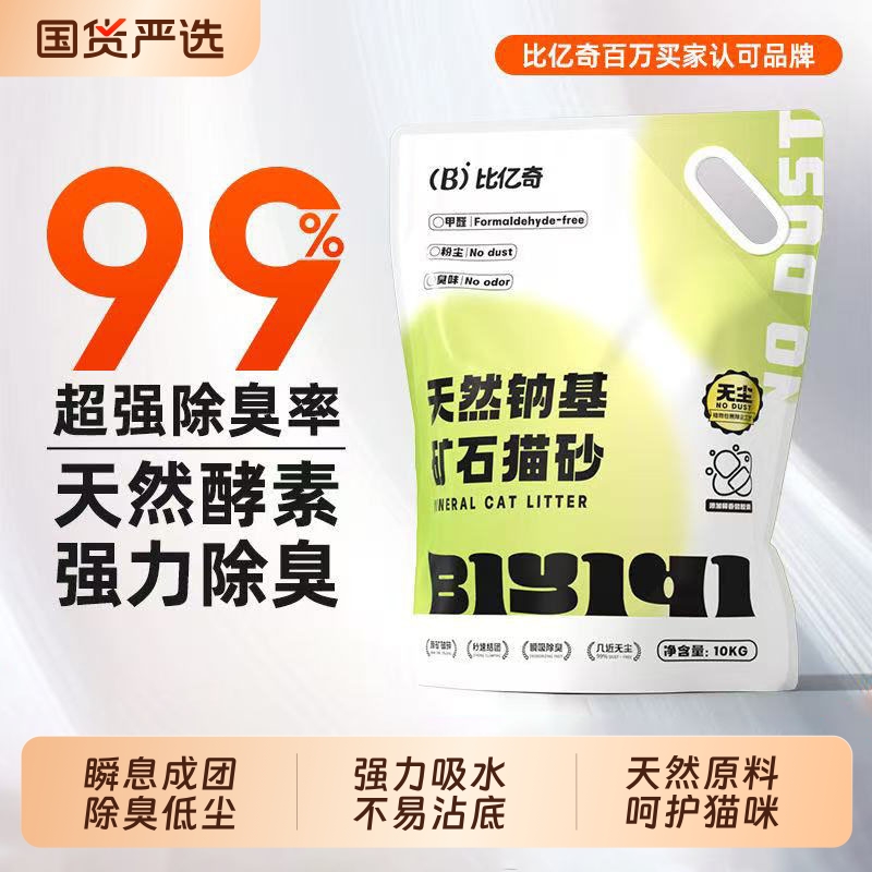 比亿奇钠基矿物石猫砂活性炭抑菌膨润土无尘除臭猫砂20kg装包邮