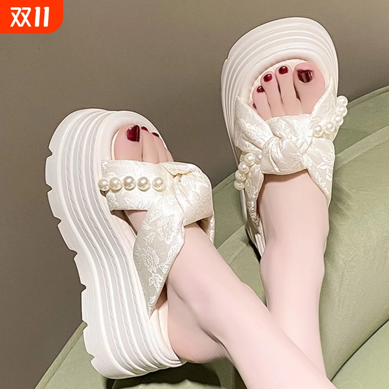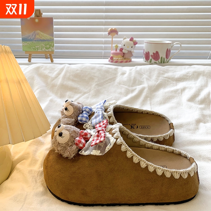 可爱花边勃肯鞋包头半拖鞋女外穿2025秋季新款内增高厚底博肯拖鞋