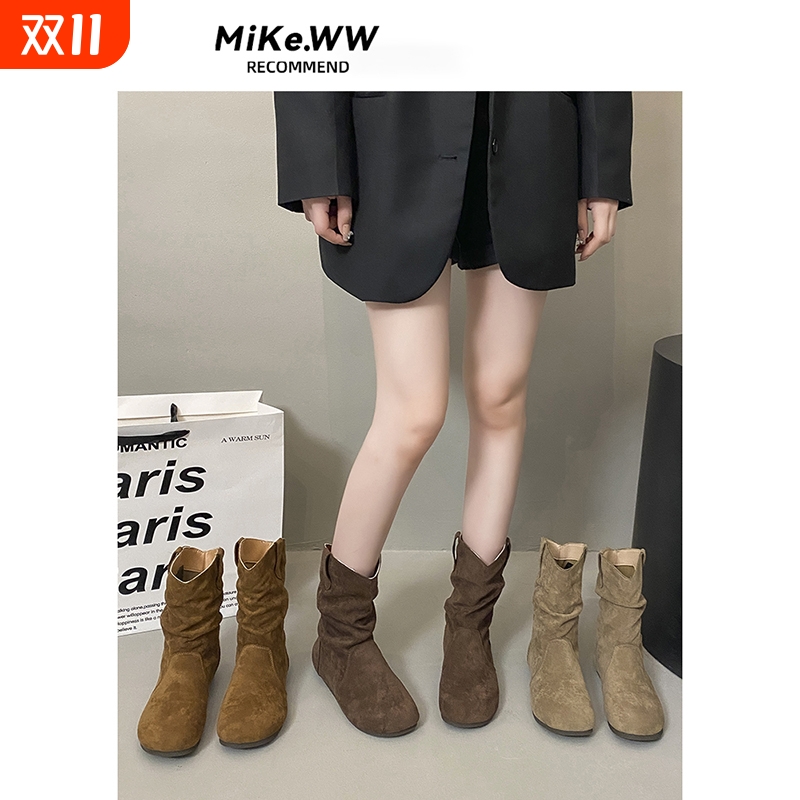 内增高勃肯鞋短靴女2025春秋新款秋冬法式复古堆堆靴靴子平底圆头