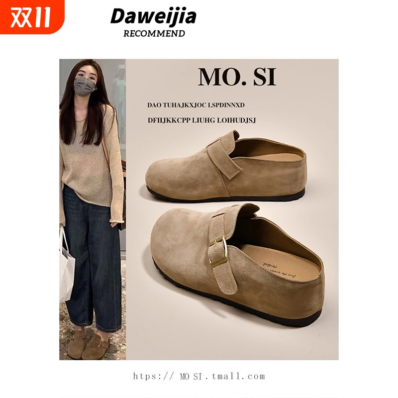 复古两穿勃肯鞋包头半拖鞋女外穿2025秋季新款厚底内增高穆勒单鞋