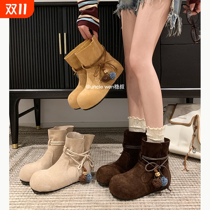 「稳叔」博肯豚靴~勃肯鞋女2025秋季大头增高厚底马丁真皮短靴女