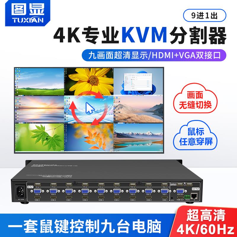 4K专业KVM九画面分割器9进1出无缝切换hdmi/vga多电脑