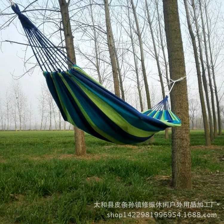 厂家 彩条帆布吊床户外室内秋千单人野营装备绑绳布袋悬挂式