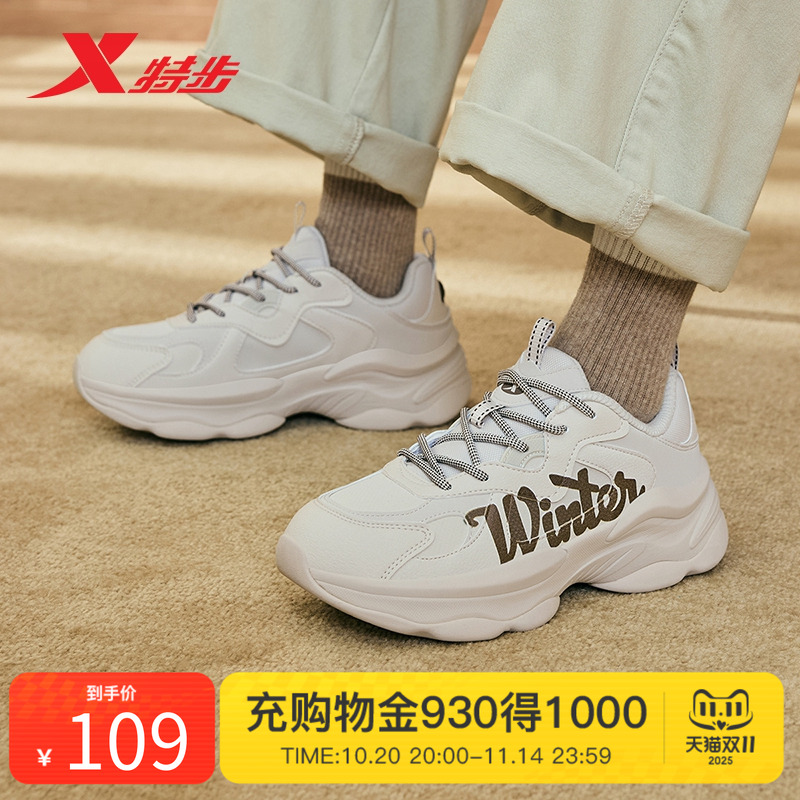 特步蛋卷鞋女鞋秋冬休闲鞋厚底增高轻便百搭运动鞋子97641832
