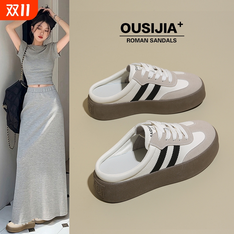 半拖鞋女外穿2025新款厚底女款包头拖鞋春夏季懒人鞋子一脚蹬女鞋
