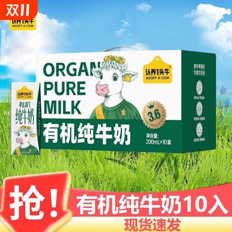 认养一头牛有机纯牛奶200mL*10盒*1箱常温学生儿童早餐代餐