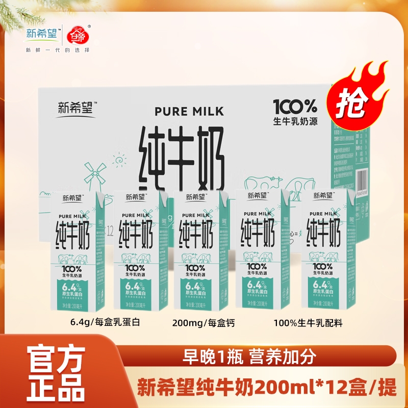 纯牛奶生牛乳纯牛奶200ml*6盒全脂学生儿童营养早餐奶(超划算