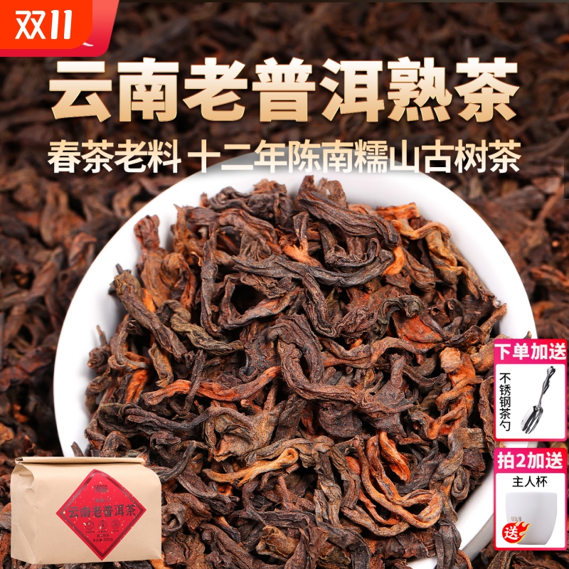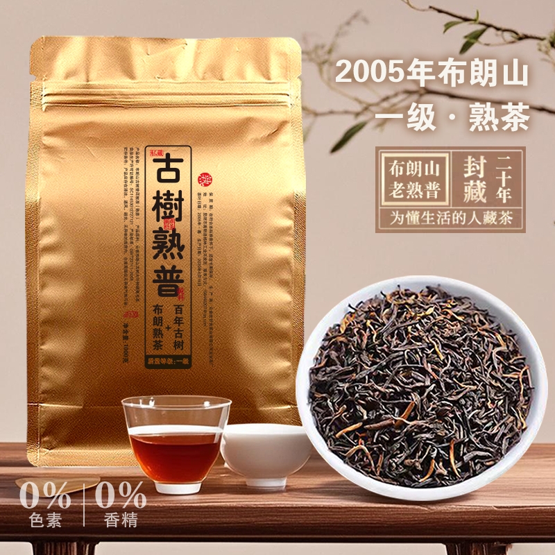 2025年古树熟茶布朗山普洱茶正宗干仓散茶散装云南勐海茶叶老散普