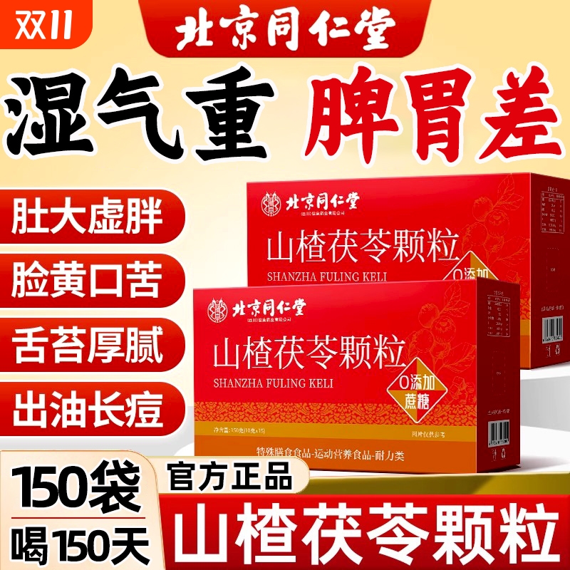 北京同仁堂山楂茯苓颗粒官方旗舰店正品非除调理湿气重养生茶养胃