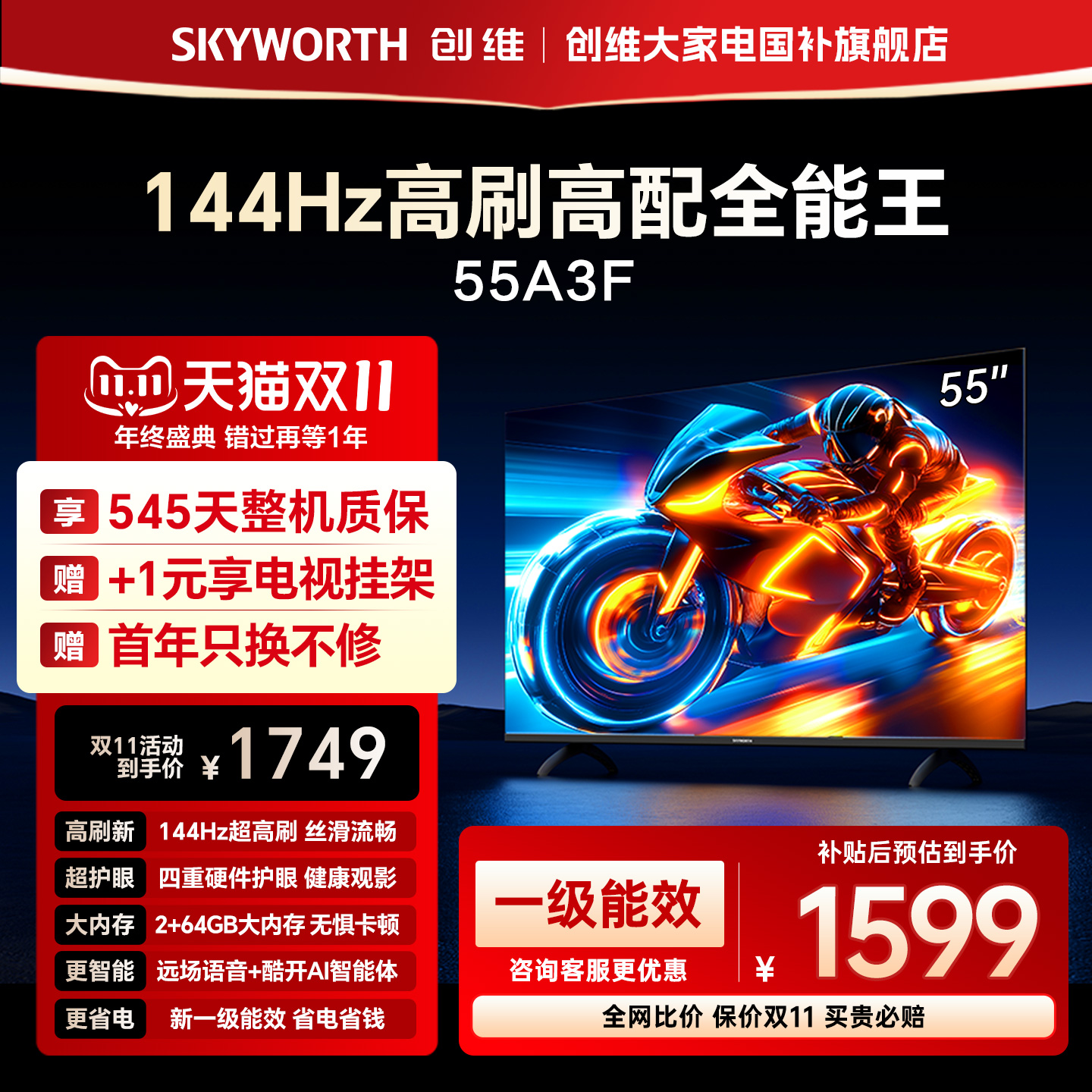 创维电视55A3F 55英寸 144Hz高刷 AI电视机液晶家用