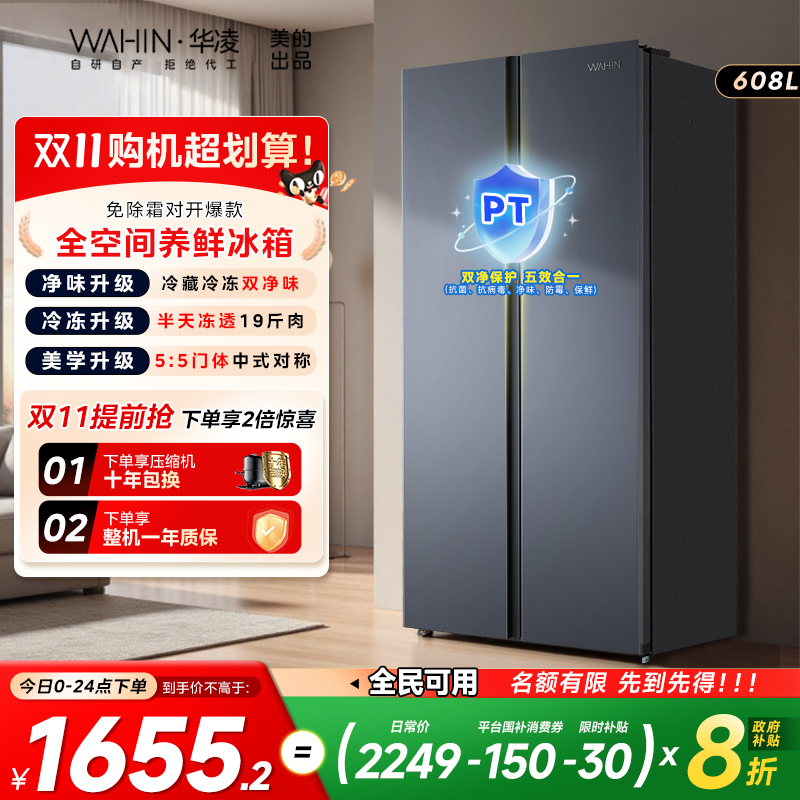 美的华凌640对开双开门两门冰箱家用大容量超薄变频一级风冷无霜