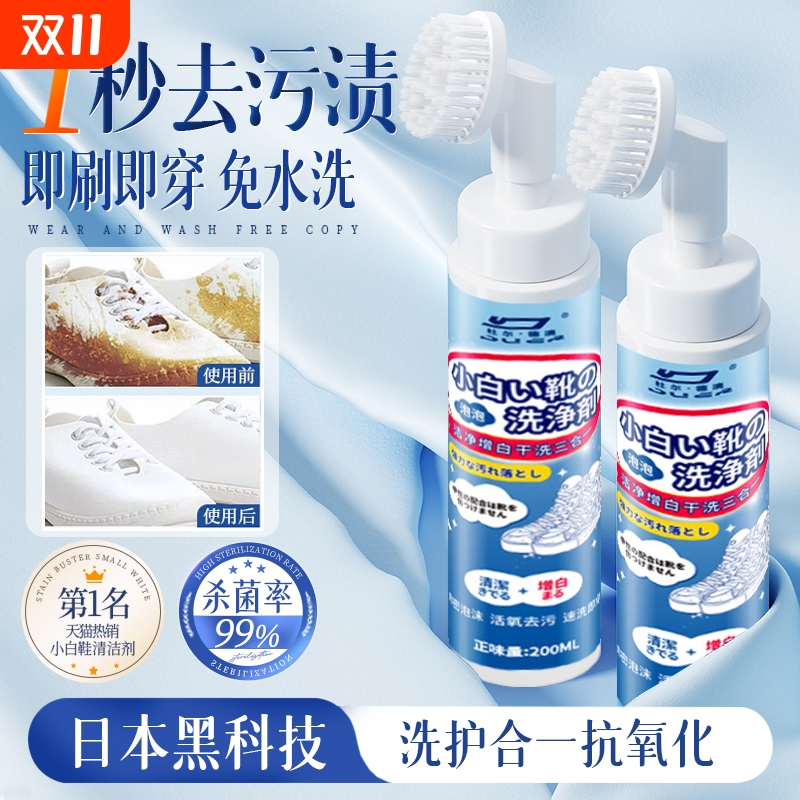 小白鞋清洁剂洗鞋刷球鞋白鞋神器去渍免洗去黄去污增白专用清洗剂