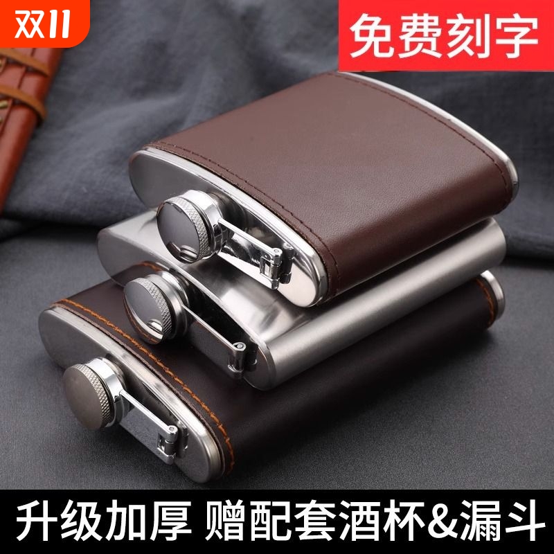俄罗斯小酒壶304不锈钢随身便携式户外1一2半5斤装白酒扁酒瓶迷