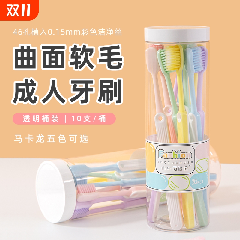 46孔曲面小宽头软毛牙刷扁平刷柄梦幻五彩成人男女情侣学生家用