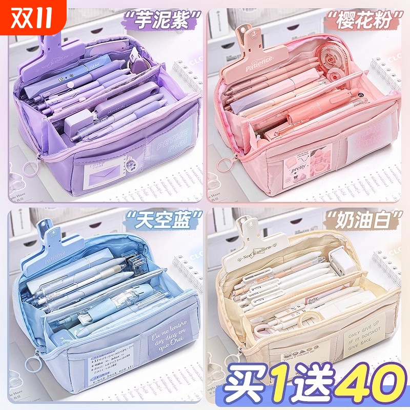 送黑猫玩偶!九层大容量笔袋透明2025新款女生初中生文具盒女孩款