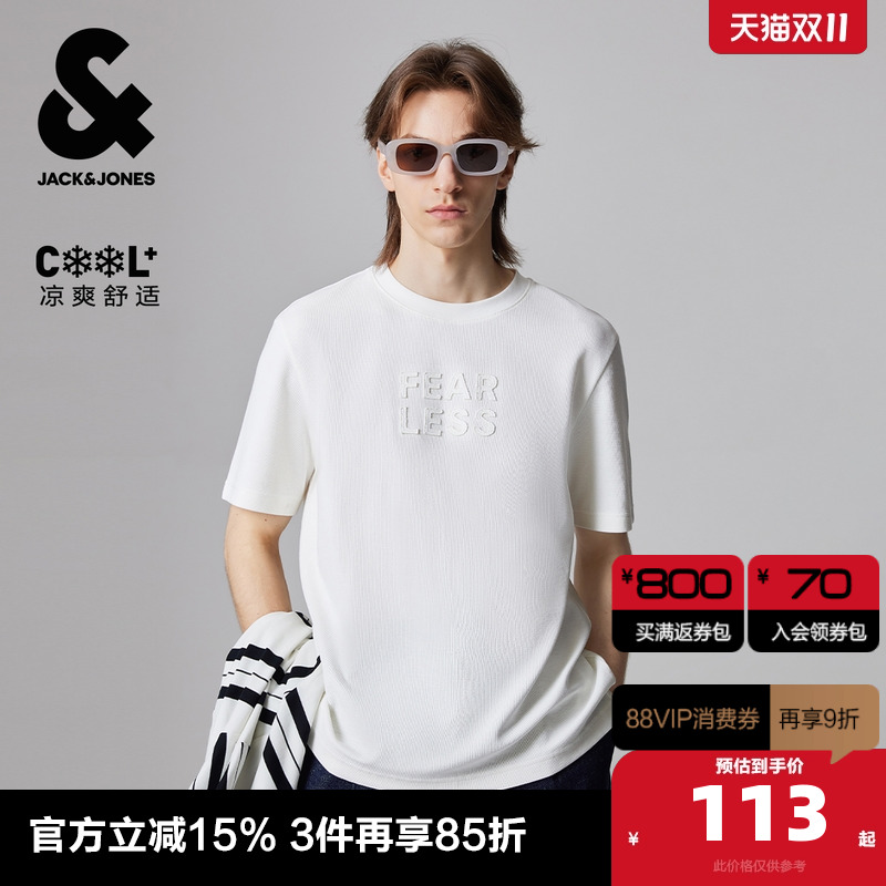 杰克琼斯男装夏季新款基础贴布图案日常休闲常规男士短袖T恤男款