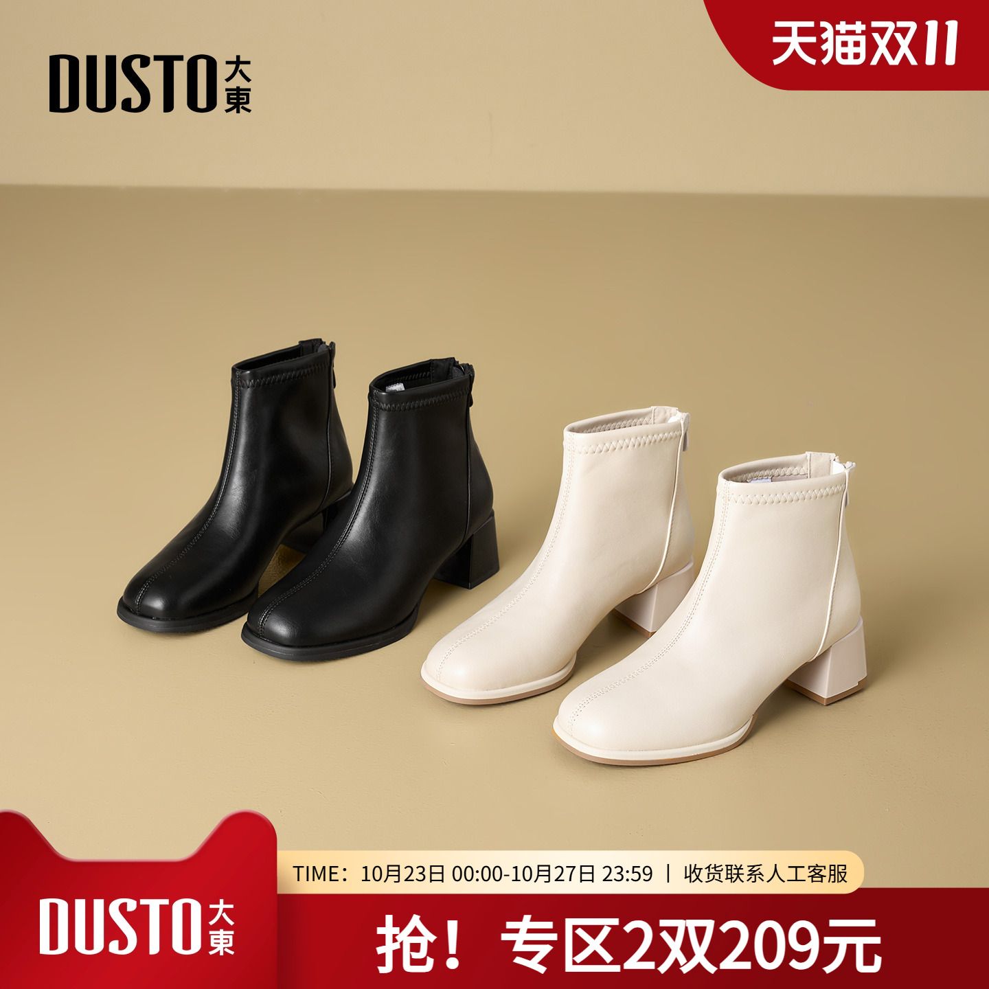 大东时装靴女鞋2025年冬季新款粗跟高跟后拉链方头舒适短靴D01