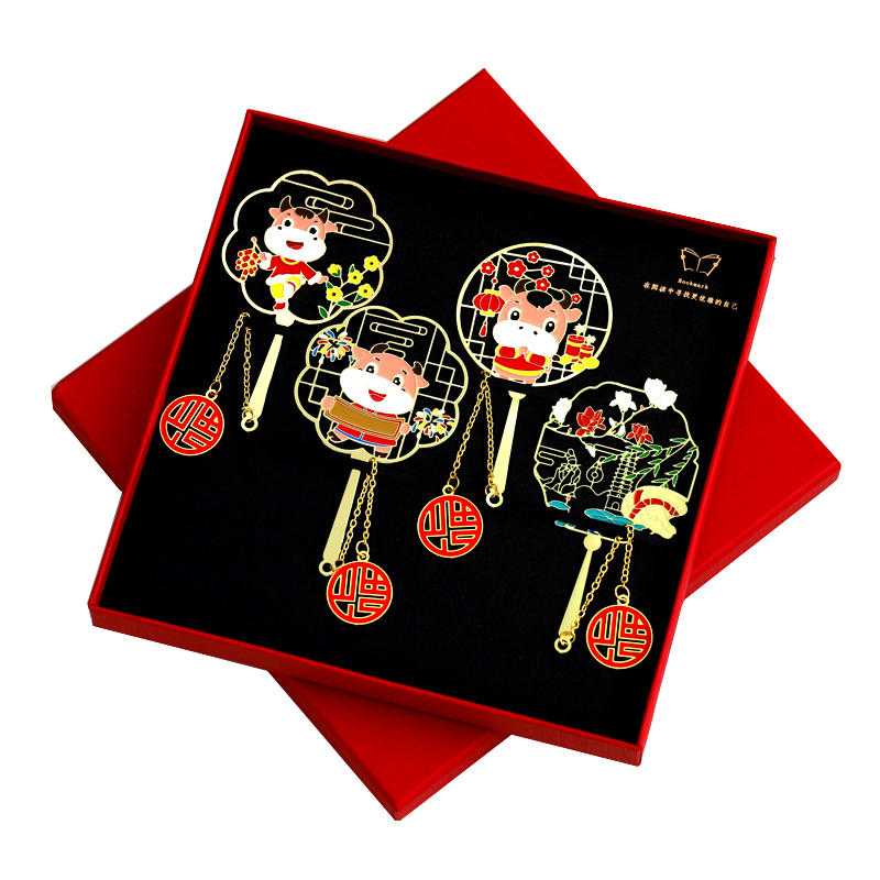 牛来运转新年牛年书签古典中国风金属镂空彩色小清新免费刻字礼品