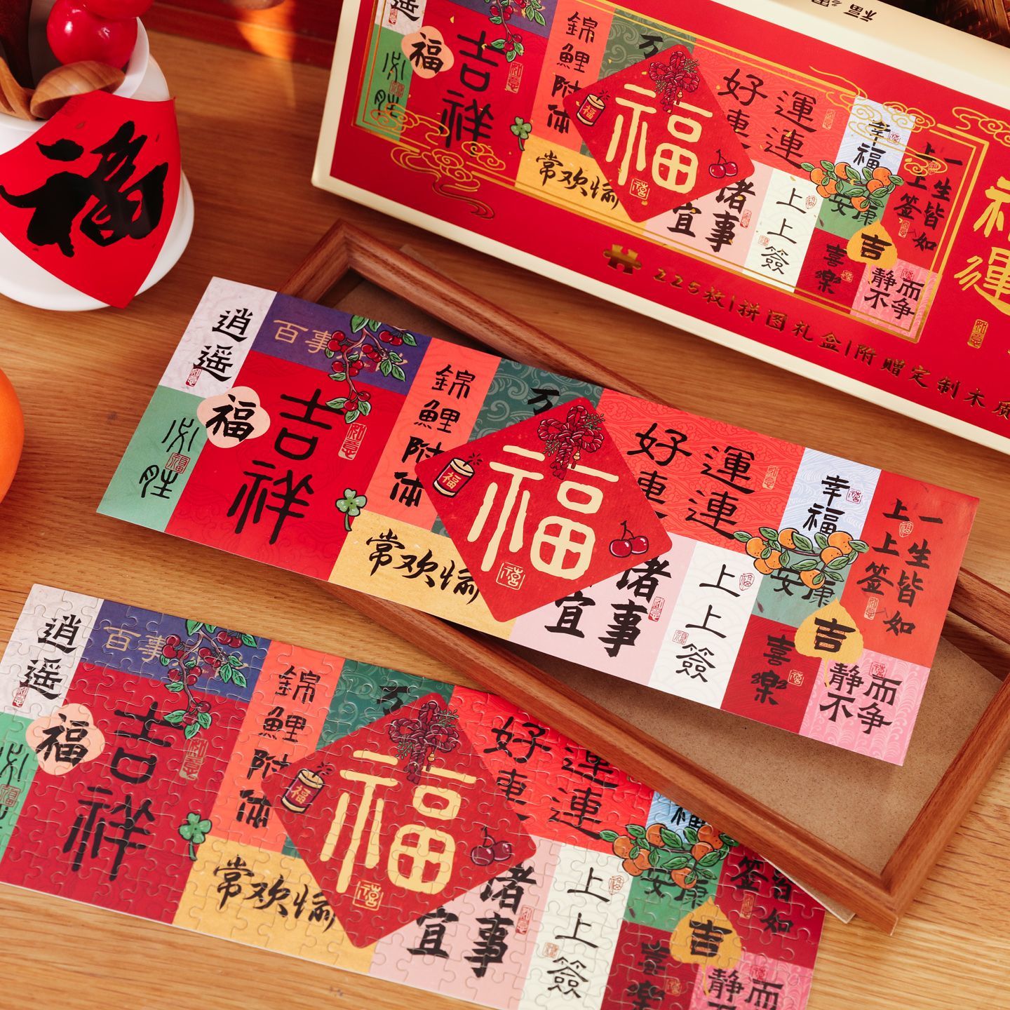 所愿皆所得国风来福来财拼图带相框春节文字祝福新年喜庆DIY桌面创