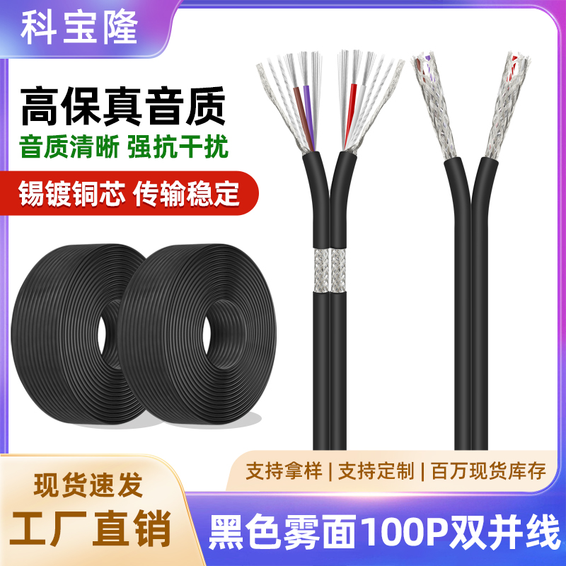 高保真屏蔽音箱音响工程线100p黑色雾面双并镀锡铜广播喇叭电子线