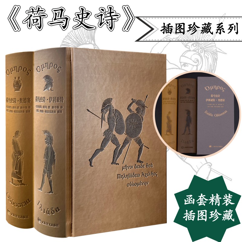 荷马史诗:伊利亚特.奥德赛(上下)2册精装插图珍藏本 古希腊荷马