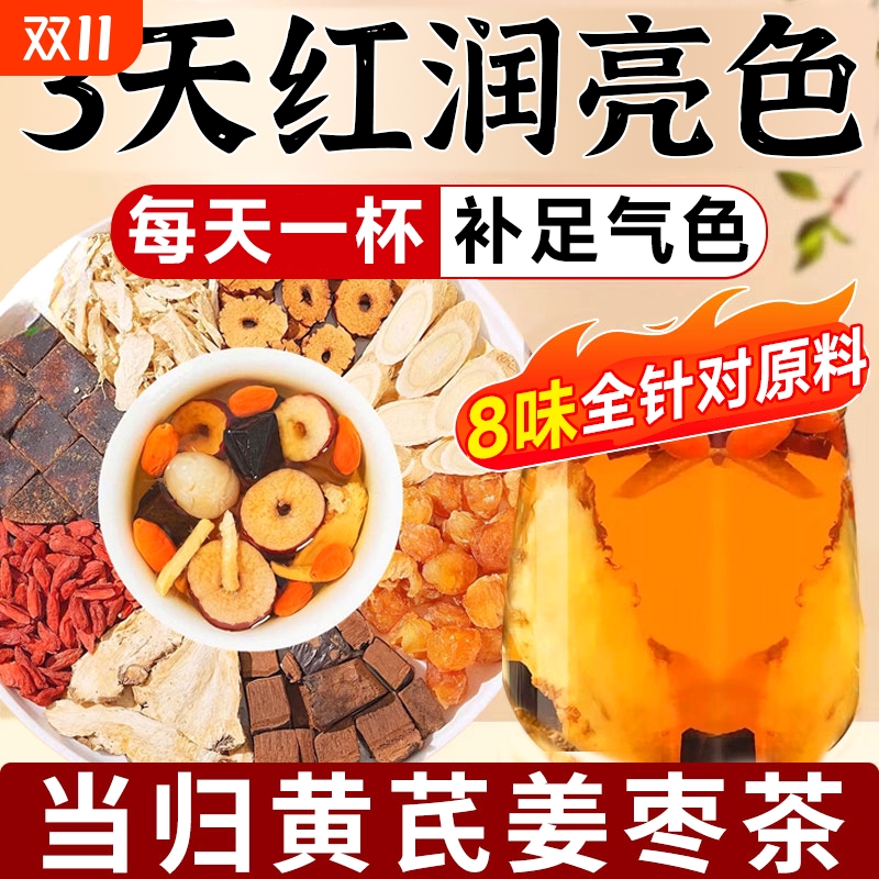 黄芪养生茶搭当归党参红枣桂圆枸杞茶双补气生女人气血养血调理