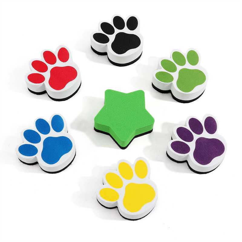 厂家直销壹辉白板擦磁性EVA毛毡布复合异形卡通狗爪板擦 白板笔擦