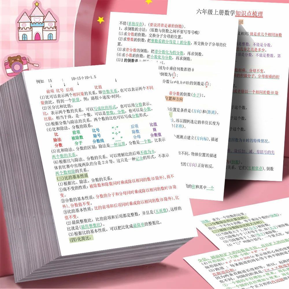 48张六年级上册数学贴纸重点公式梳理总结易错点归纳学习贴画