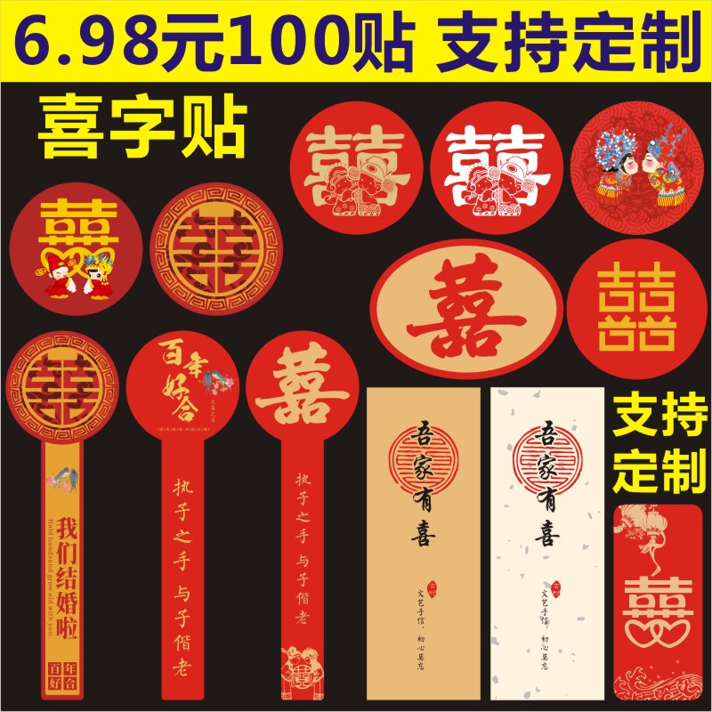 诗束 我们结婚啦百年好合吾家有喜鸡蛋囍糖标签婚庆贴纸不干胶定制2