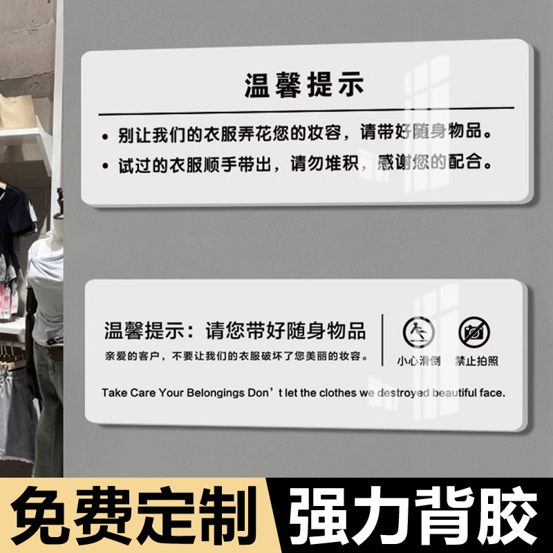 服装店试衣间标识牌提示牌亚克力墙贴定制更衣室温馨标语小心我们的衣