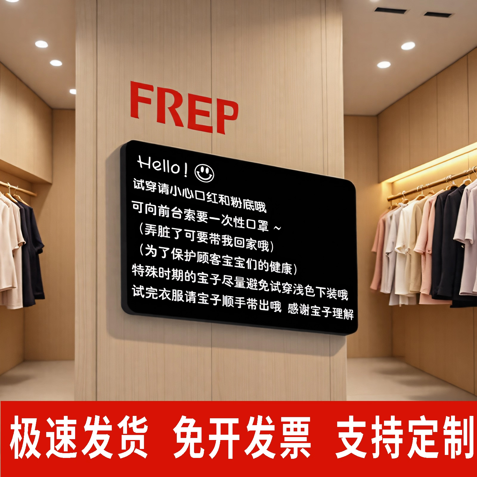 试衣间标识牌温馨提示牌请不要让我们的衣服弄花了您的口红服装店更衣