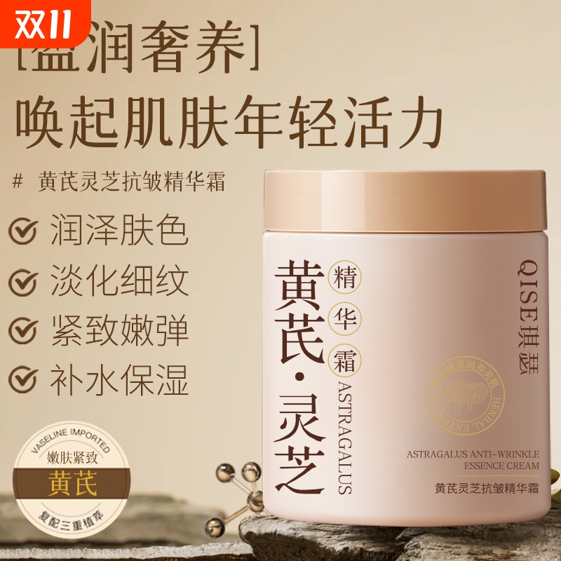 黄芪灵芝抗皱精华霜去黄提亮祛斑保湿滋润抗氧化控油补水护肤润肤