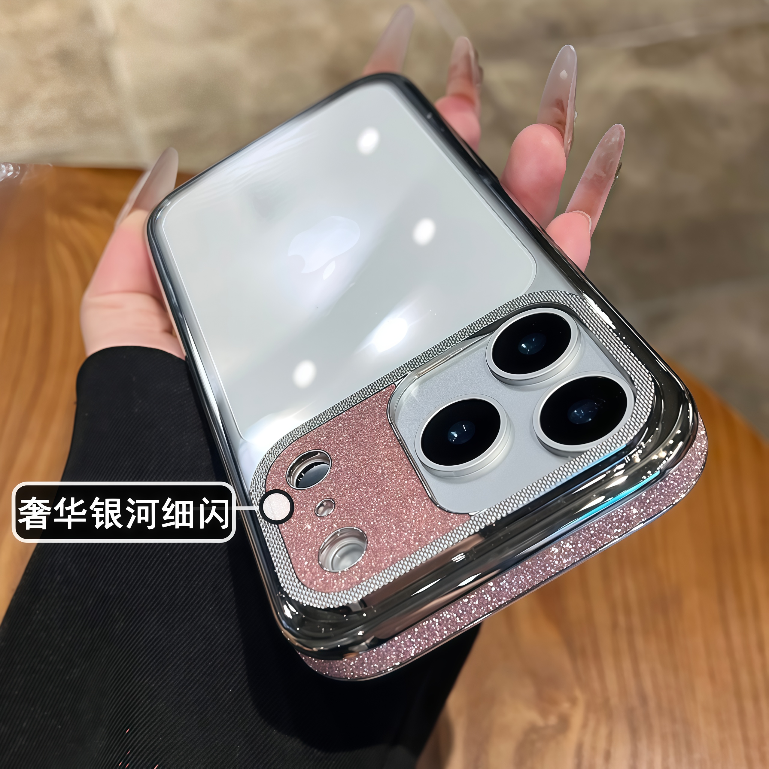 透明闪粉边框适用于苹果17pro