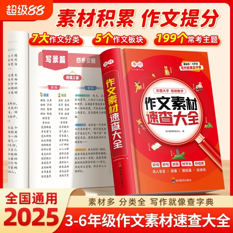 书行小学3-6年级满分作文素材速查大全好词好句好段好开头结尾素材