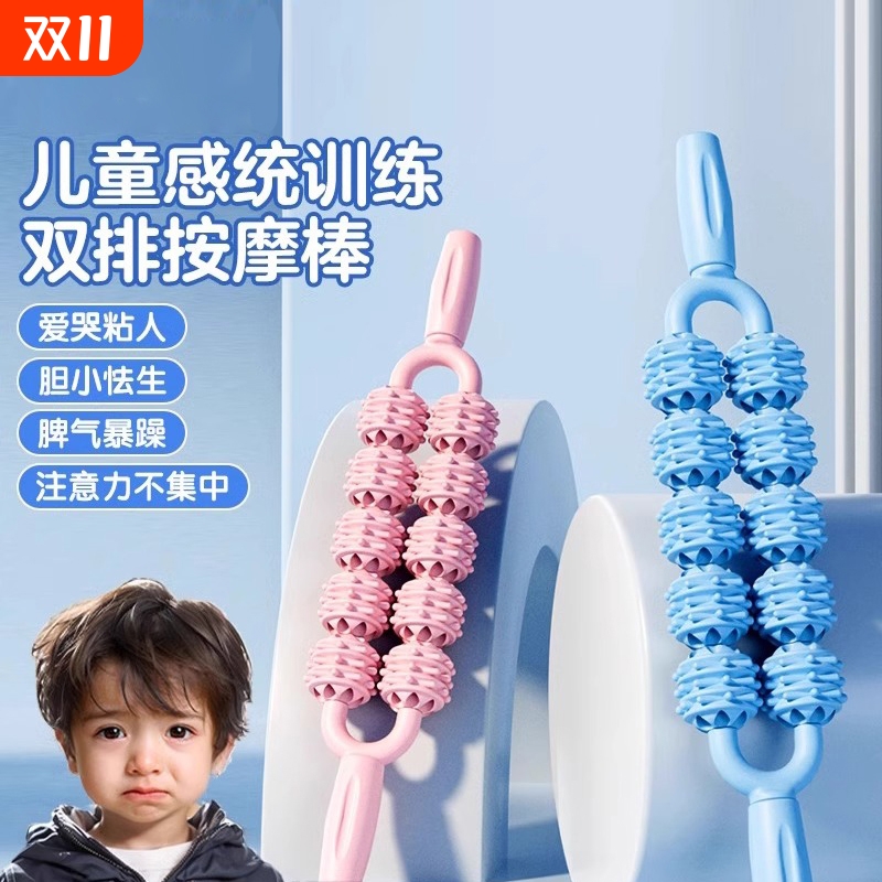 儿童肌肉放松滚轮棒三排狼牙按摩滚轴神器腿部可弯曲瑜伽松解四排