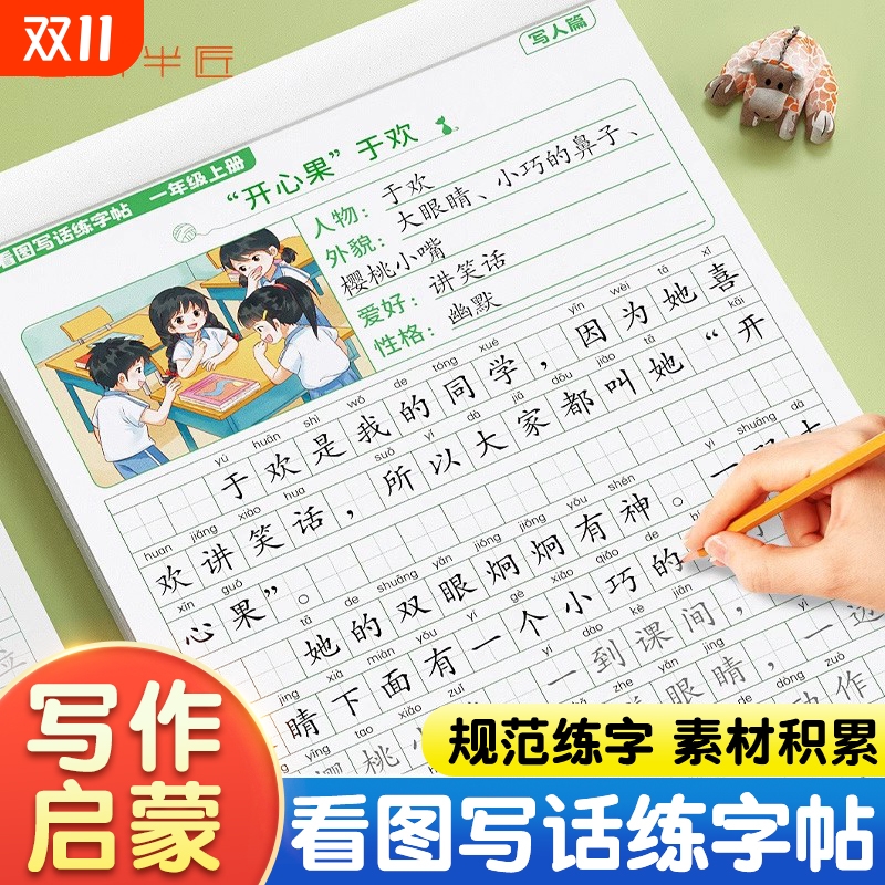 一句话日记英语作文临摹字帖小学生三四年级看图写话描红英文练字本上